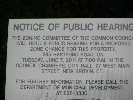 The Zoning hearing of the Common Council will be held Tuesday, May 7, at 7 p.m. in the second floor Council Chambers at New Britain City Hall, 27 West Main Street.