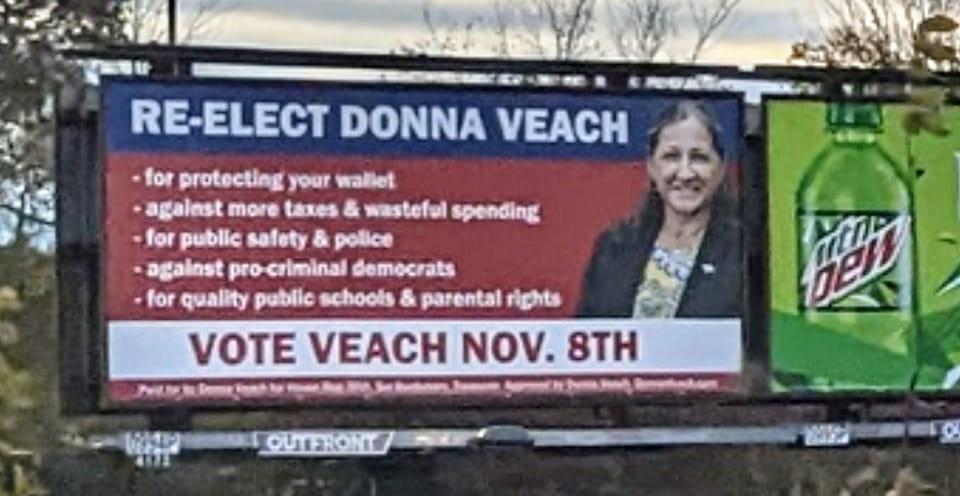 BERLIN – State Rep. Donna Veach (R-30), a first-term Republican state representative representing Berlin and Southington, is calling Democrats “pro-criminal” on a campaign billboard.