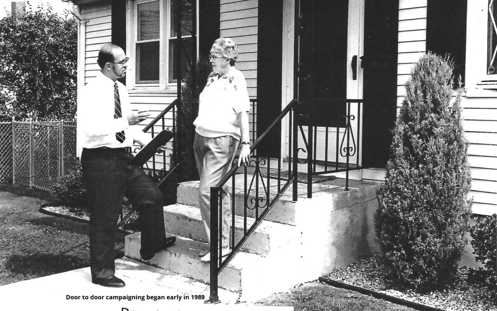 After my union work, I would leave the office about 12:30 PM return home, check in with Diane and the kids and be canvassing by 2:30 or 3.This would allow me to contact seniors home during the day and overlap into the time when workers would be returning home at 4:30 to 5:00. I’d walk until 5:30 or 6 and sometimes later, if I was on a roll.